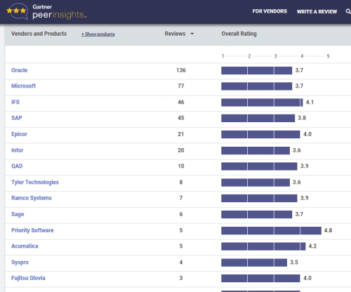 Pour les groupes, le carré de tête reste SAGE, SAP, Oracle (Netsuite) et Microsoft.